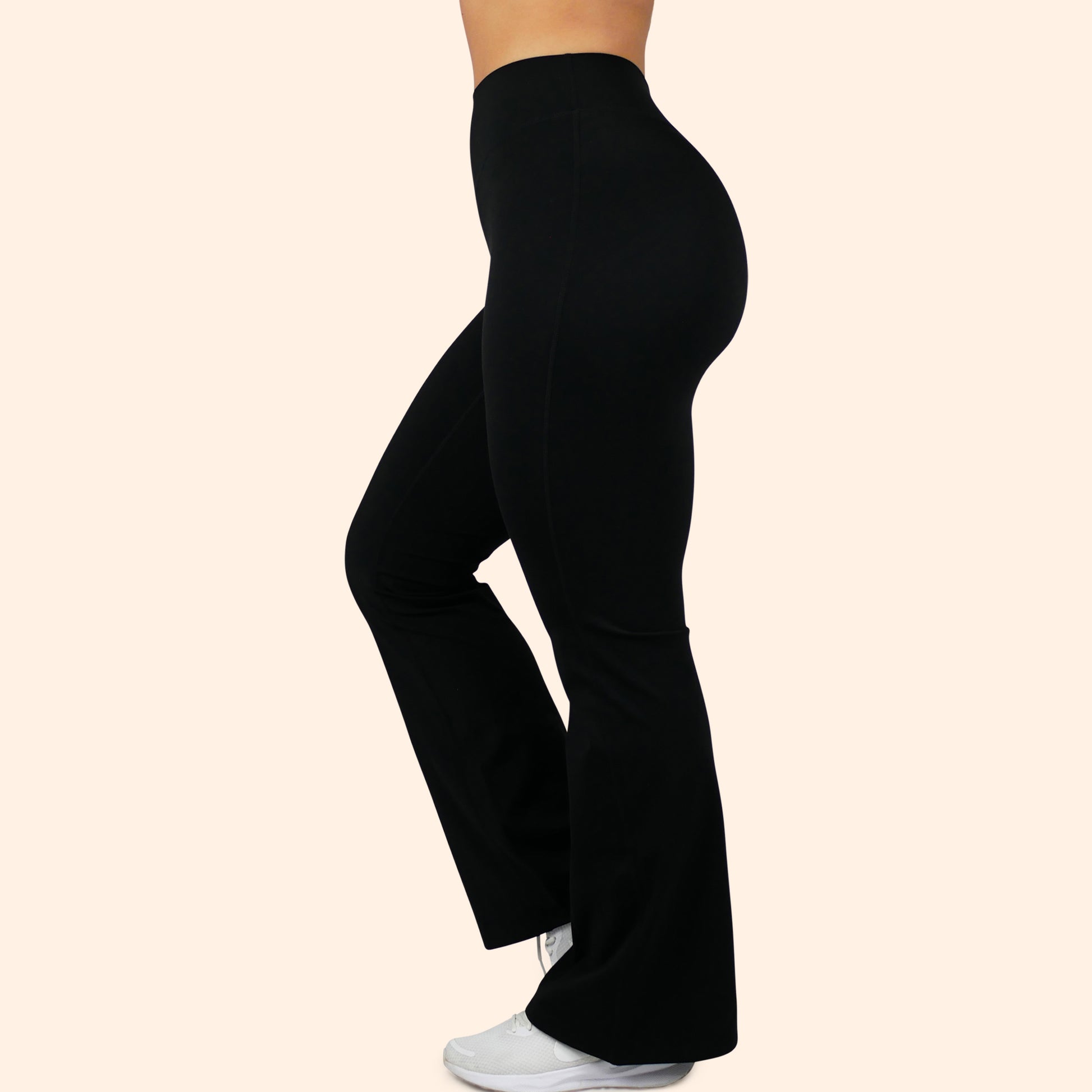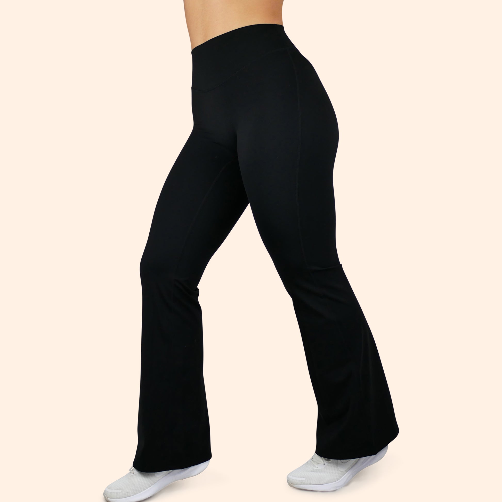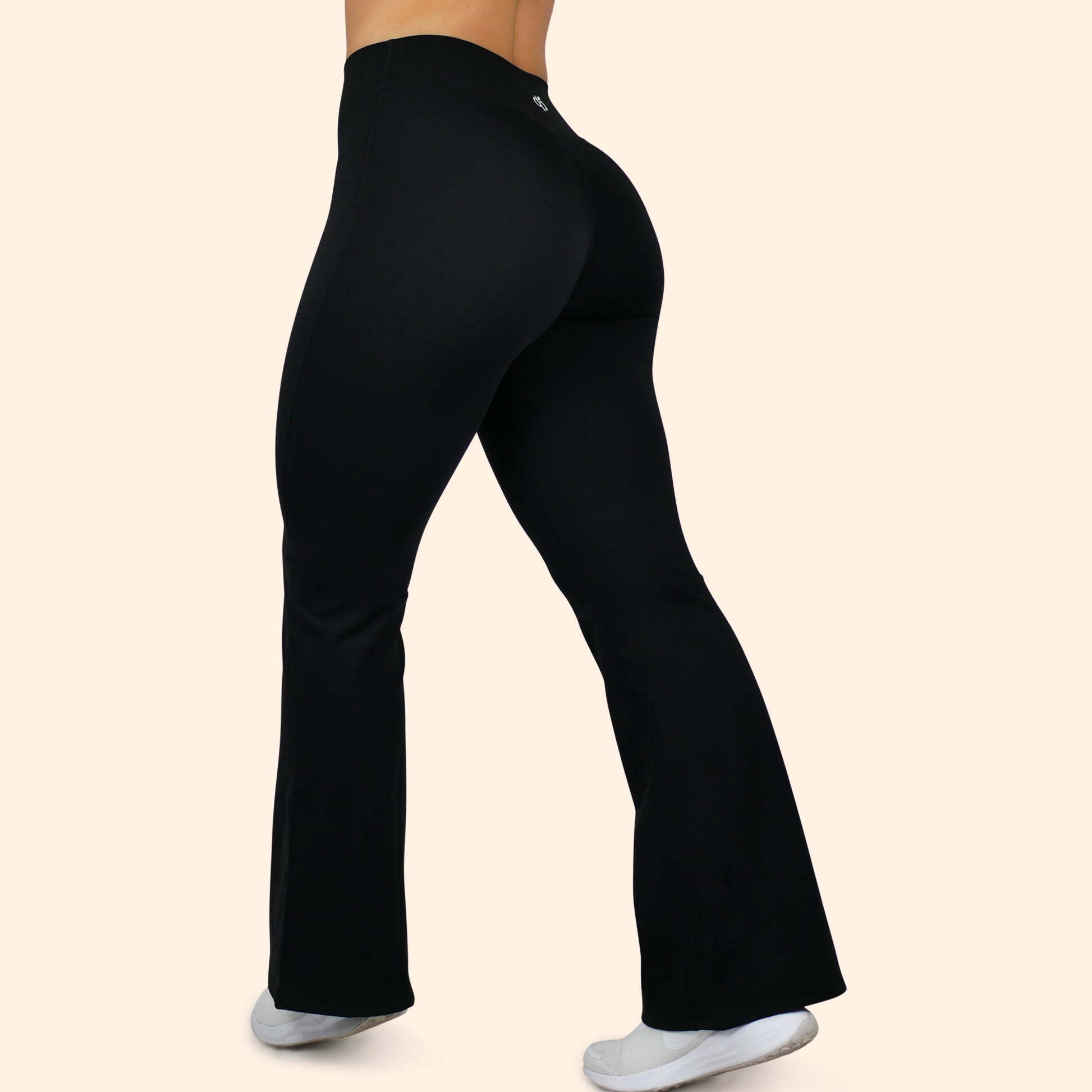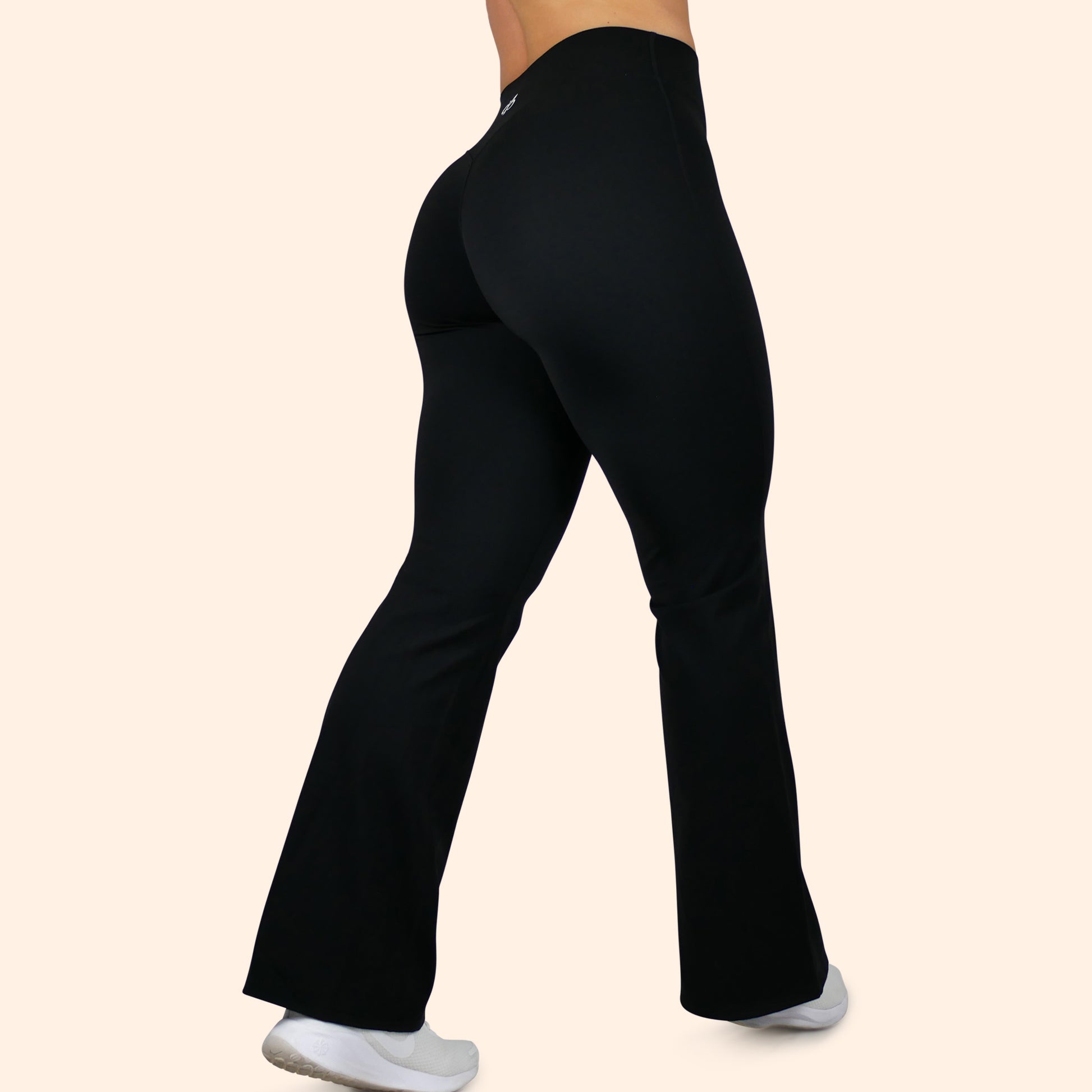 Su bajo acampanado aporta una caída fluida que alarga visualmente las piernas y aporta un toque sofisticado a cualquier look.